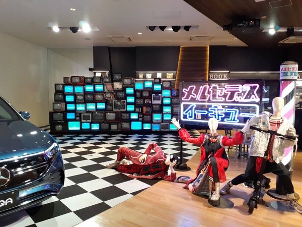 同僚に聞いたら、今は昭和が流行っているんだよ、とのこと。つまりベンツのショールームも昭和を演出して特に昭和を懐かしく感じる40代後半以上の方をターゲットにしているんですね。
